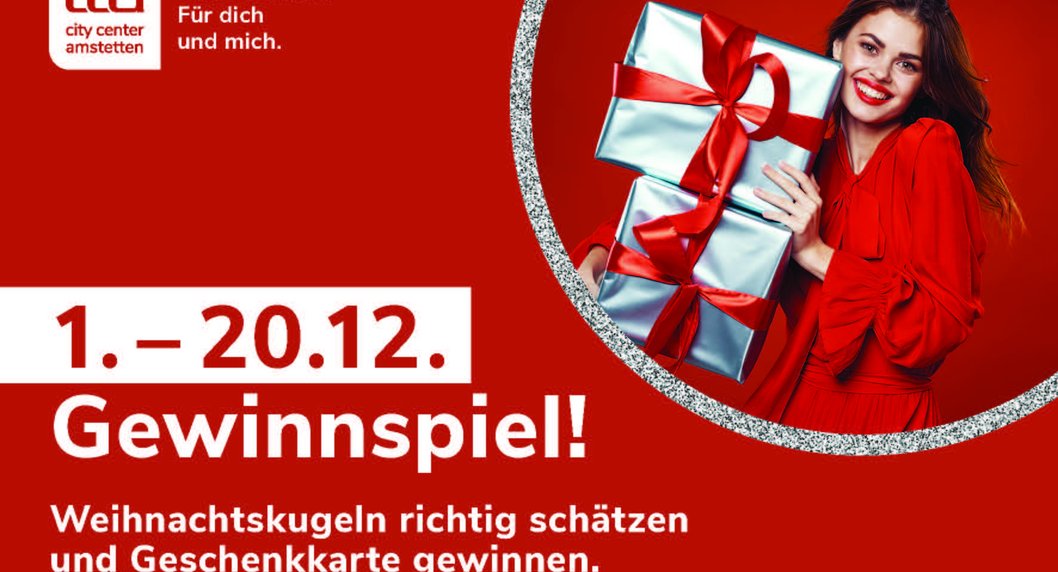 Im CCA 2, Ebene 1 finden Sie einen Behälter mit Weihnachtskugeln - einfach vorbeikommen, Kugelanzahl schätzen, Gewinnspielkarte ausfüllen und in die Box werfen. Wir verlosen 3 x 200 € CCA Gutscheinkarten. Geschätzt werden kann von 1.12. - 20.12.